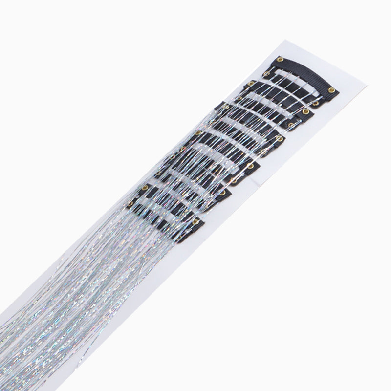 Clip in hair tinsel has a metal clip design. No professional tools needed, just pop open and close the tension clip, you can easily blend the hair glitter strands into your hair and instantly become “highlight sparkle” in a second!