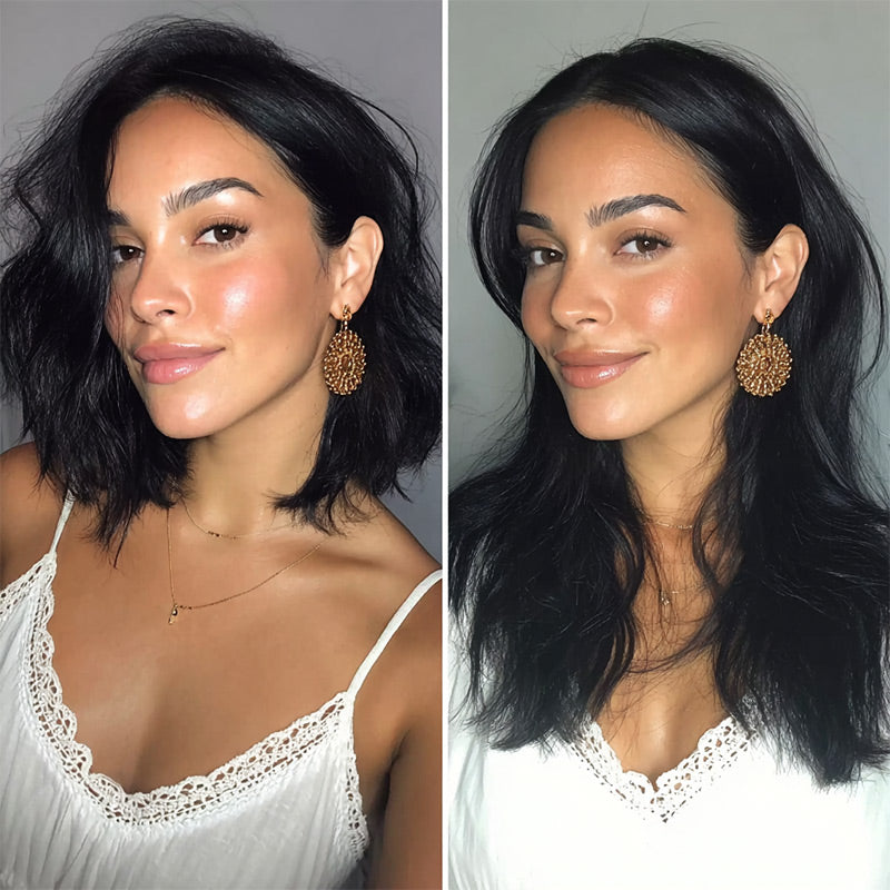 STEP 6: By curling or straightening the real hair clip-ins and your natural hair together, you’ll make sure the blending is perfect and that the outcome looks natural.