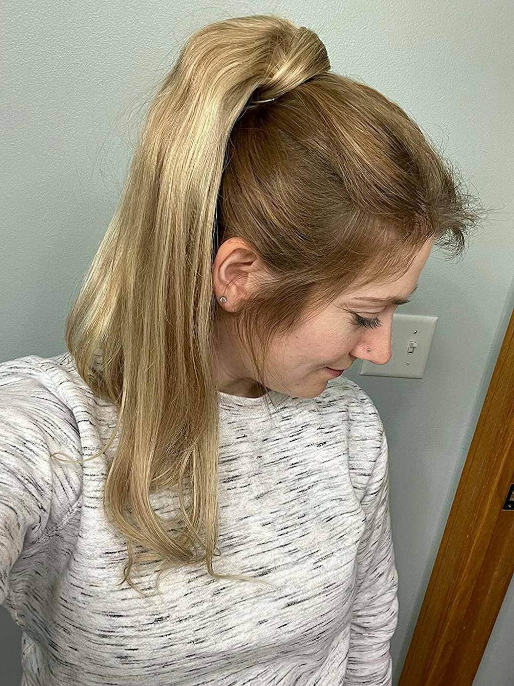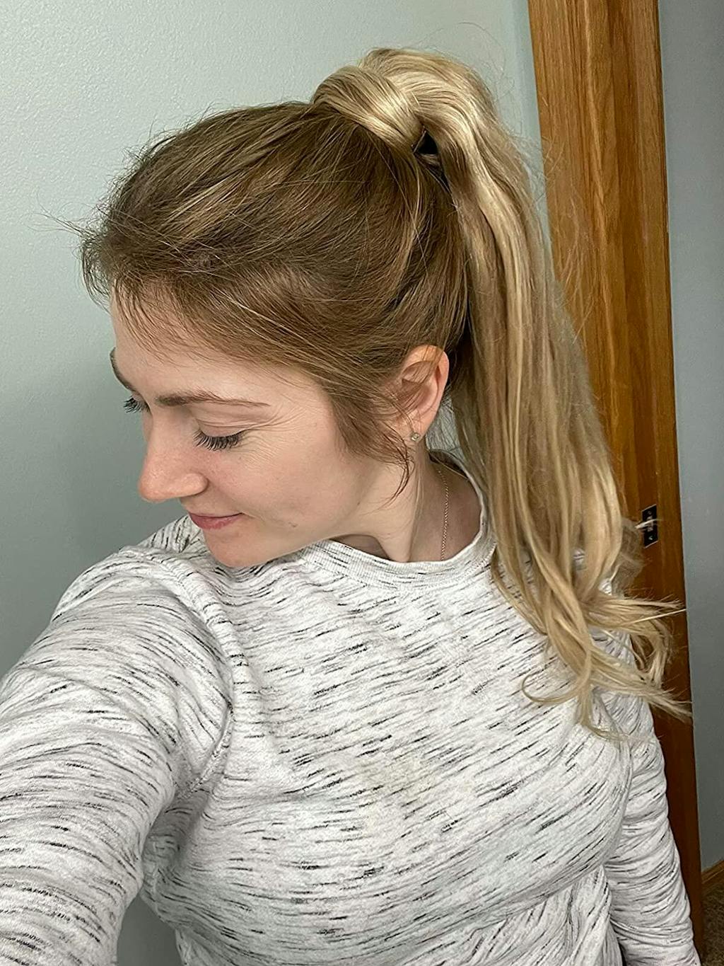 Designed with two traditional hair extension clips and velcro detail, our ponytail hair extensions fit securely using a wrap-around ponytail fastening that leaves you with a voluminous mane. Available in the widest range of colors and length, they blend naturally with your own hair and can be styled to waves or curls using hot tools. An easy one-piece application, the DOORES Hair Ponytail Extension give your ponytail a glow up in minutes!