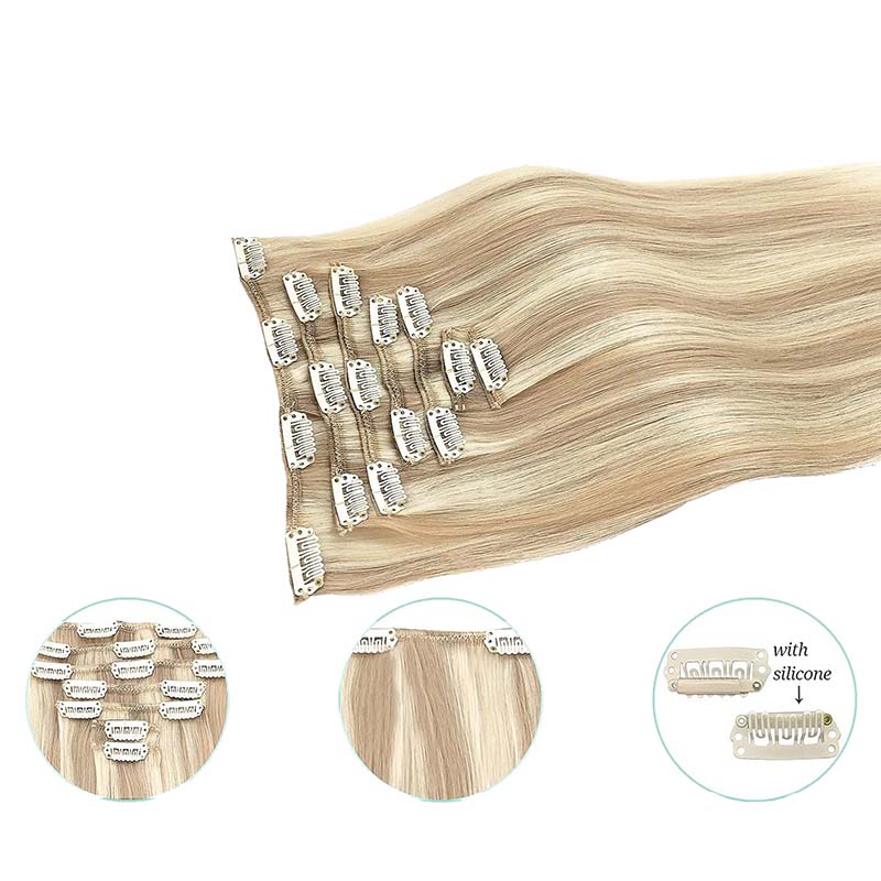 7-Piece Dark Blonde / Bleach Blonde Highlights (18A/613A) Clip in Hair Extensions