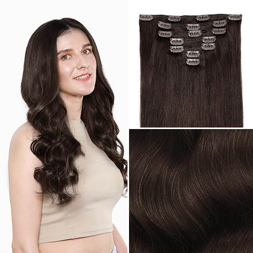 7-Piece Light Dark Brown (2A) Clip in Hair Extensions