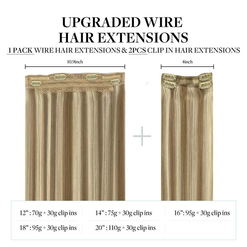 | 14" | 105g | 1 | 1 * 10.9" wide weft with 4 clips 2* extra 2-clips weft (4") 2 * replacement clips 7 * different sizes nylon wires |