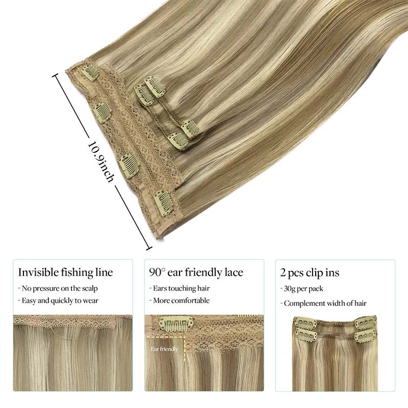 | 12" | 100g | 1 | 1 * 10.9" wide weft with 4 clips 2* extra 2-clips weft (4") 2 * replacement clips 7 * different sizes nylon wires |