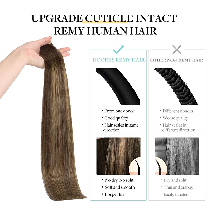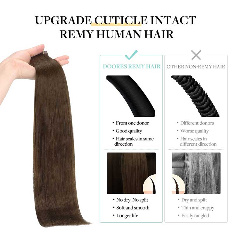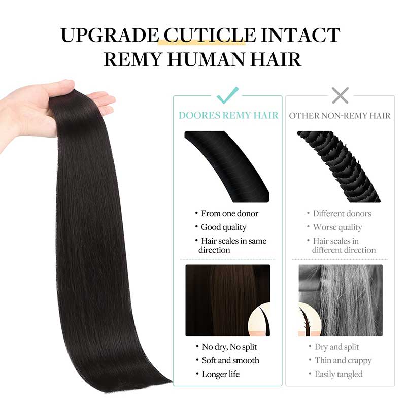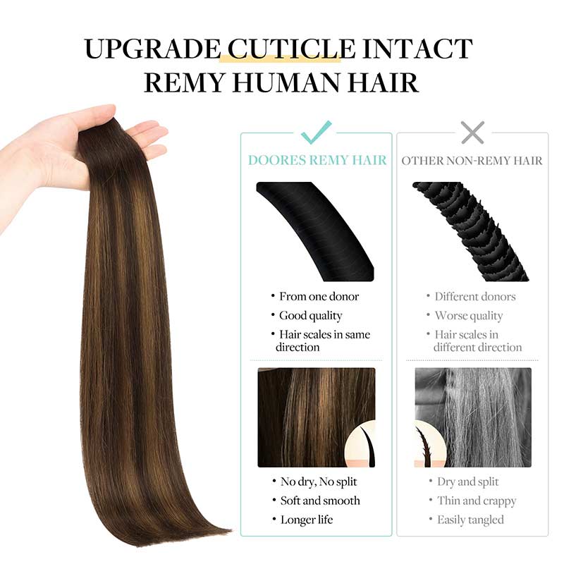 Doores remy tape in extensions empower your style with 100% premium human hair lasting up to 3-6 months. Embrace the salon-favorite semi-permanent trend. Ideal for every individual, the sleek attachment creates a natural look that's authentically you.