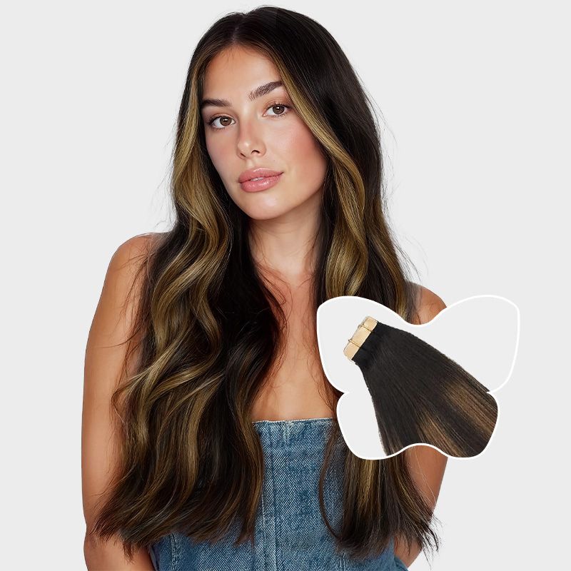 Natural Black / Chestnut Brown Balayge (1B/6/1B) Remy Tape-In