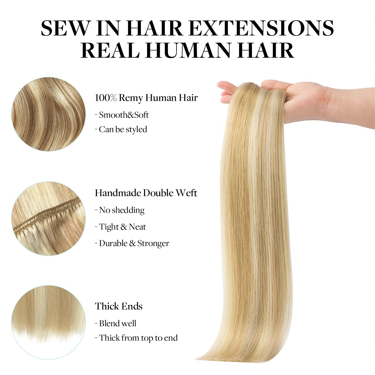 Dark Blonde / Bleach Blonde Highlights (18A/613A) Sew In Weft Hair Extensions