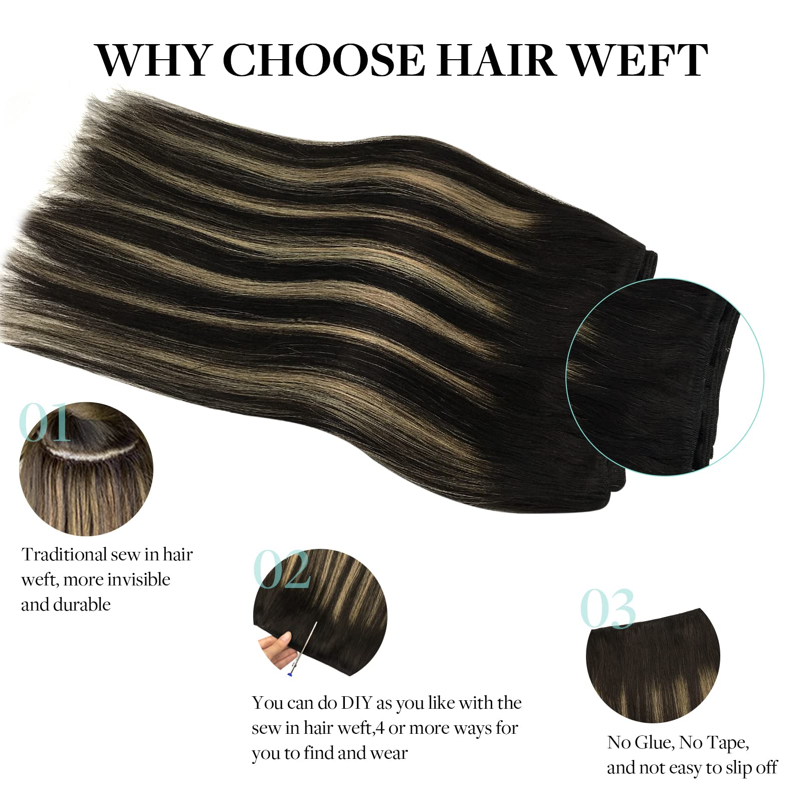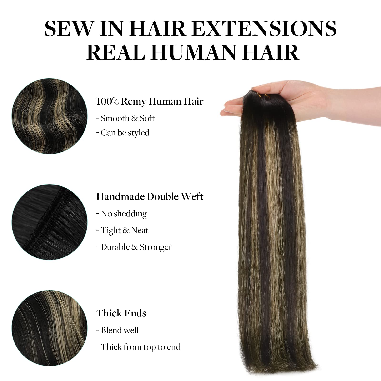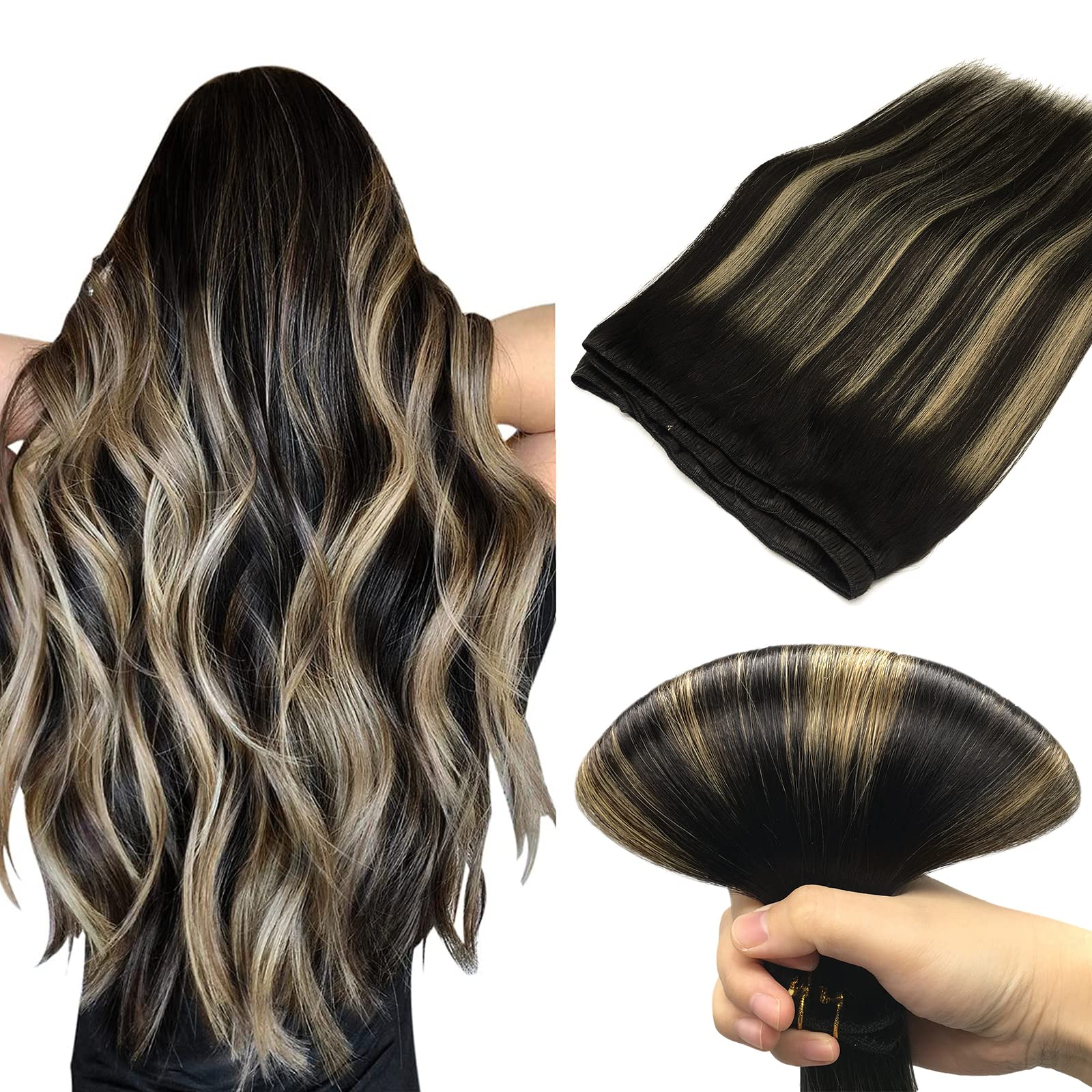 Natural Black to Light Blonde (1B/19/1B) Sew In Weft Hair Extensions
