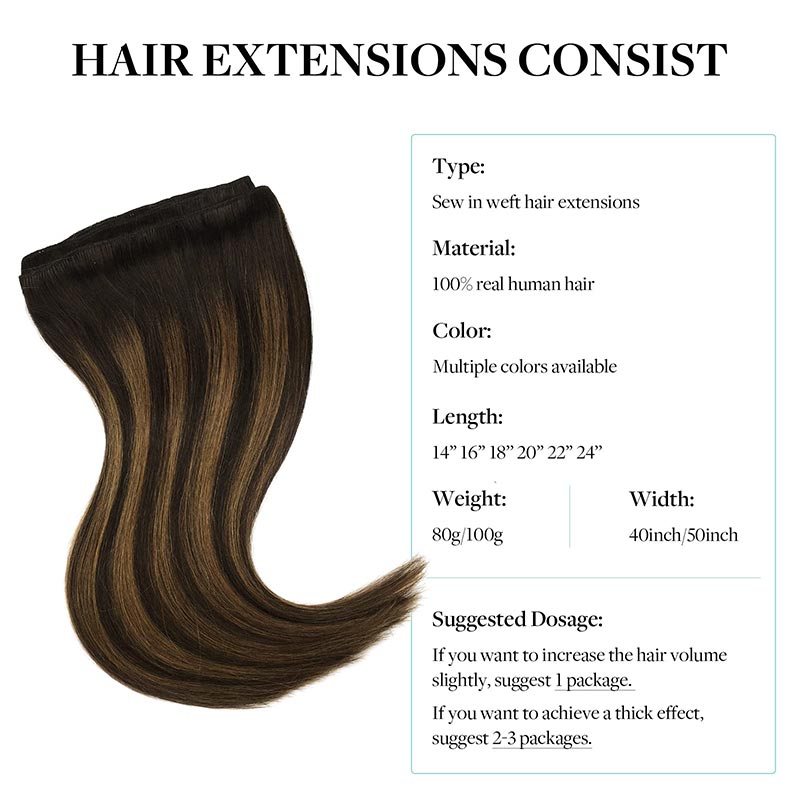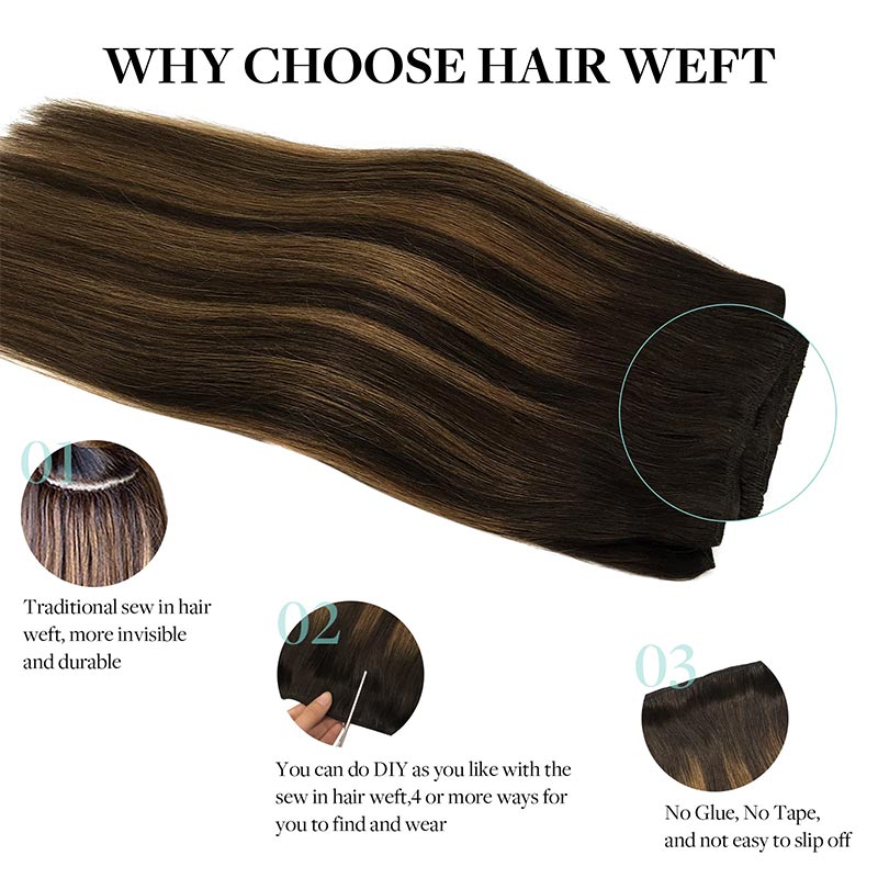 Dark Brown / Chestnut Brown Balayage (2/6/2) Sew In Weft Hair Extensions
